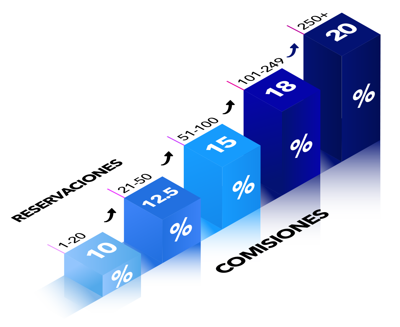 En Original Affiliates, creemos en recompensar generosamente tu esfuerzo y dedicación. Nuestra estructura de comisiones está diseñada para garantizar que tu potencial de ingresos refleje directamente tus resultados de ventas, ofreciéndote entre un 10% y un 20% de comisión. Esto significa que cuantas más reservas generes, mayor será tu porcentaje de comisión.